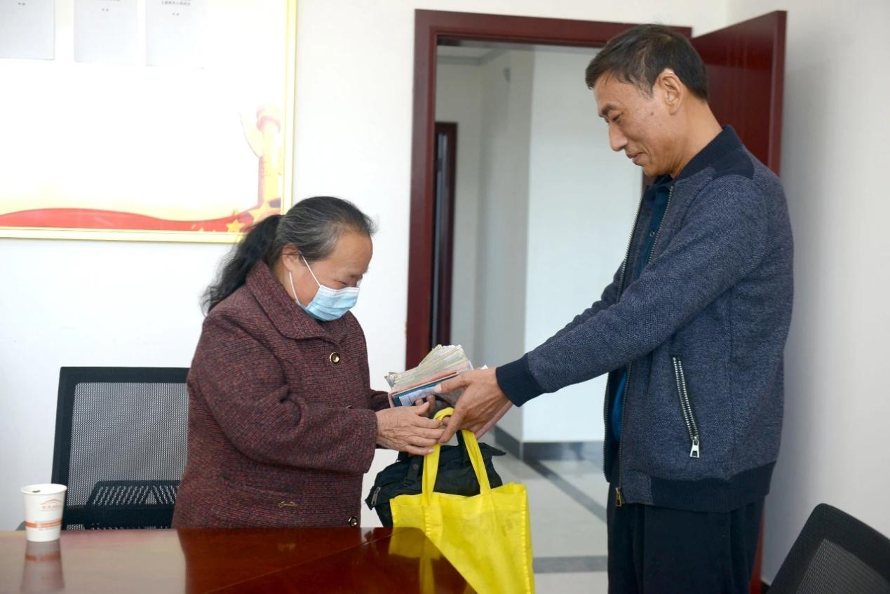 10月26日上午10时,急着赶回家的李七元在市中心医院门口乘坐了一辆的士,到咸安区鱼水路下车,下车之后李七元就急匆匆走了,随身携带的一个黄色布手提包落在了出租车后排座位上。鄂LT1568驾驶员黄敬华打扫车内的卫生时,在后排发现了这个黄布袋子,于是将失物交到了公司。通过社区、记者和城顺公司工作人员的努力,终于找到了失主,11月4日早上8点不到,李七元就带着儿子小钟来到城顺公司,核实相关信息后,李七元领回了丢失的东西,手提包里装着的有1万多元现金,这是她的一笔进货款,还有几本总计46万余元的存折,是她和老伴的全部家当。