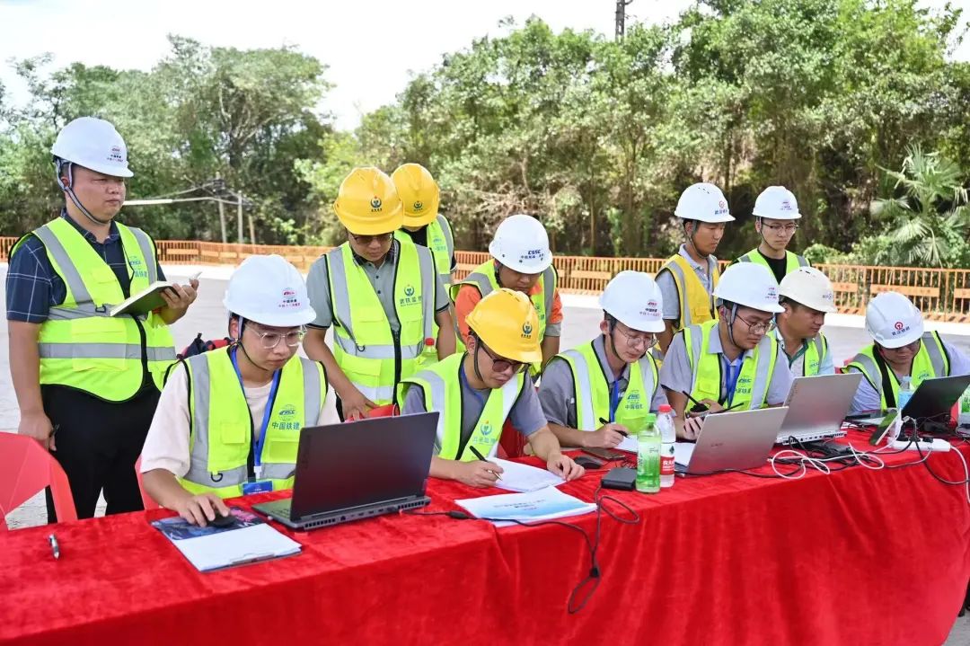 12点23分开始转体,14分钟后,已转26.931°;15分钟,已转28.568°……施工过程中,转体桥通过自动连续牵引设备,控制转体梁以平均每分钟1.15度的速度缓缓转动。同时现场技术人员根据转盘上布置的刻度、编号,实时监控转动数据,并通过在转体梁上安装速度传感器和风速测量仪,实时监控和调整转体速度,有效保证转体精确到位。13时40分,转体顺利完成。