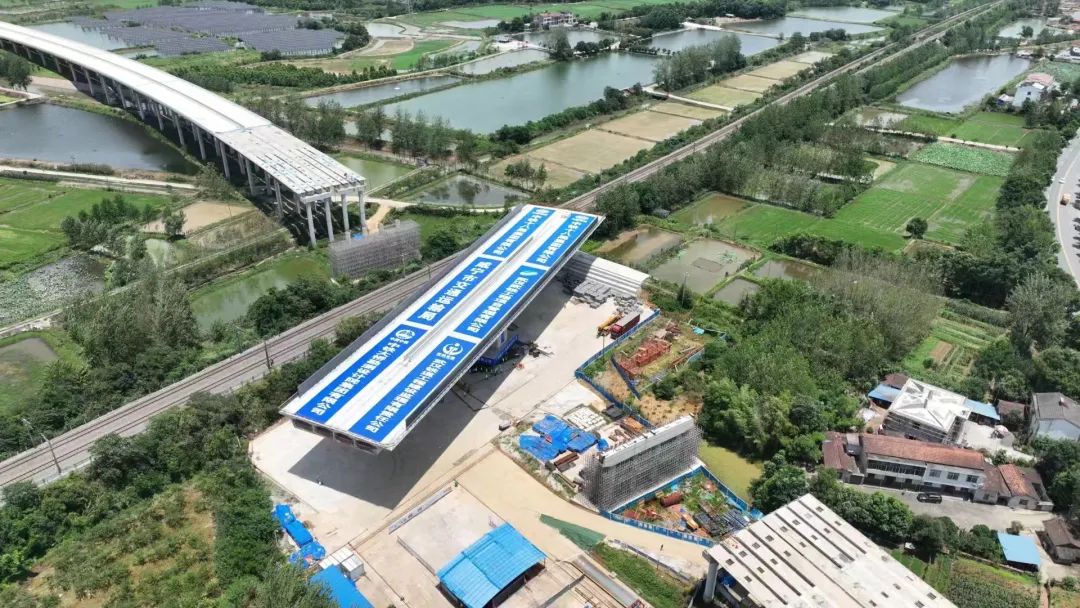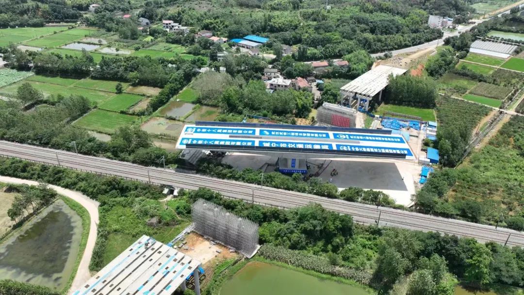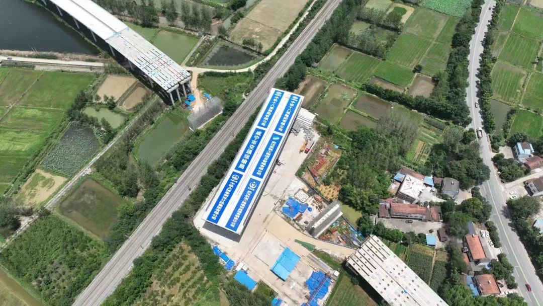 中午12时许,记者来到位于咸安区汀泗桥镇古塘村的施工现场。骄阳似火,几十名工人在现场挥汗如雨,有条不紊地做着转体前的准备工作。旁边不远处,就是京广铁路,偶尔有火车通过。