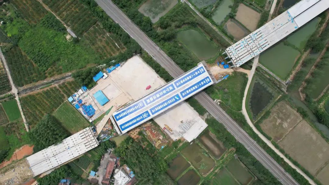 京广铁路是我国南北铁路交通大动脉,密集时段平均每3至4分钟就有一趟列车驶过,施工“天窗”时间仅有90分钟,作业时间短、转体重量大、安全风险高,对转体技术和精度的要求极为严格。